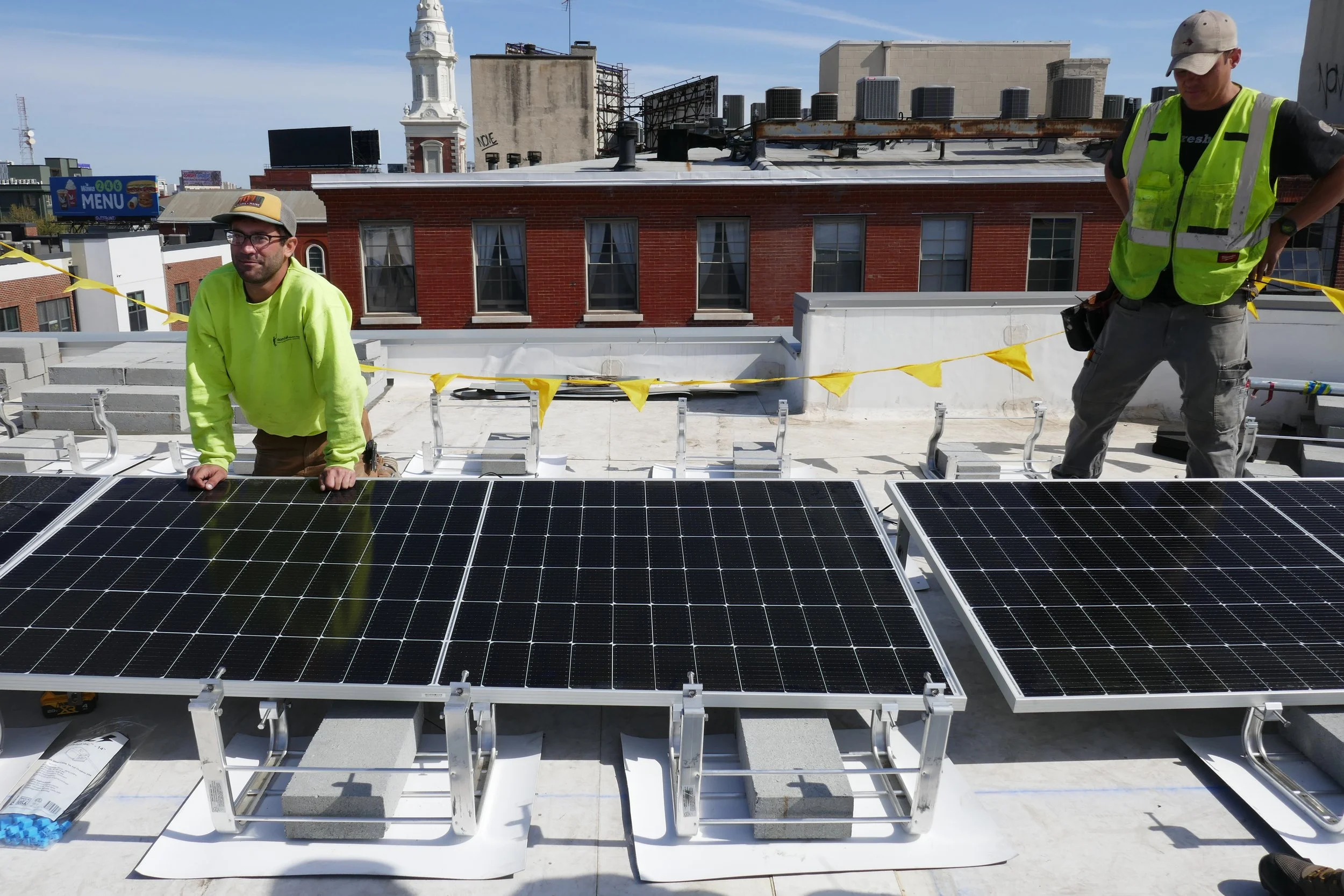 Solar panels installed on the rooftop of Old First House.